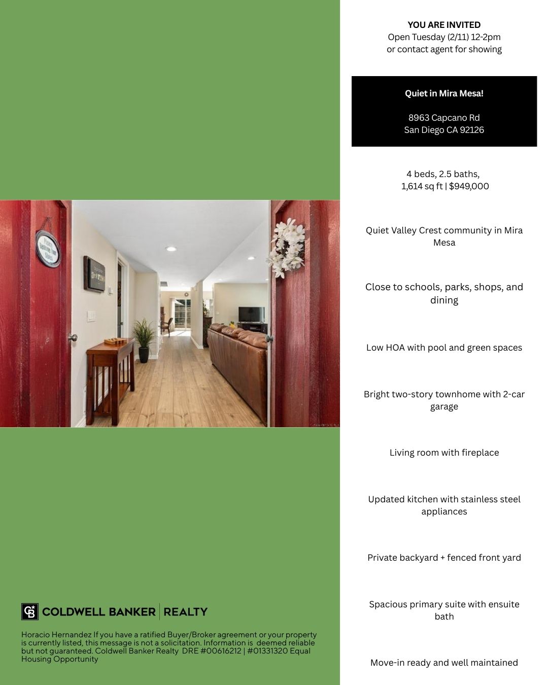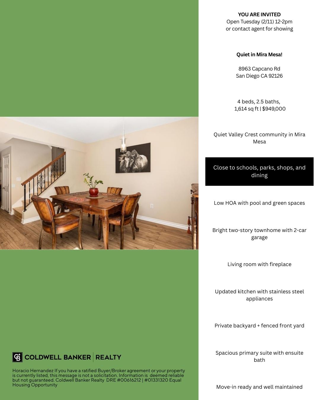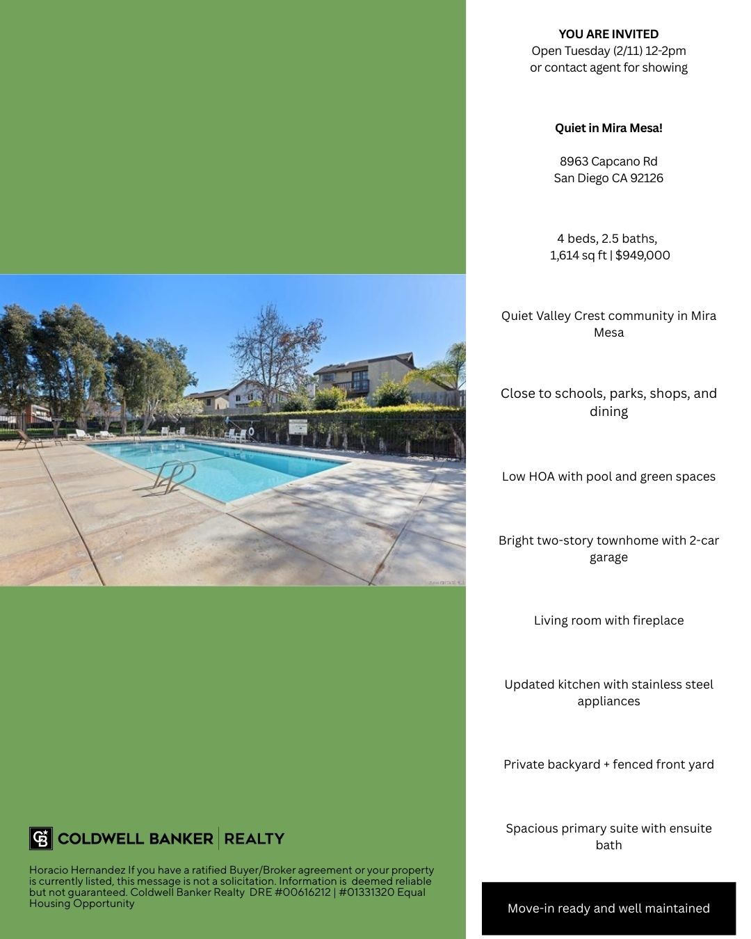 Information deemed reliable but not guaranteed. No legal or financial advice provided. If your property is listed or you have a Buyer/Broker agreement, this is not a solicitation. Equal Housing Opportunity | DRE 01331320 | DRE 00616212 Coldwell Banker Realty